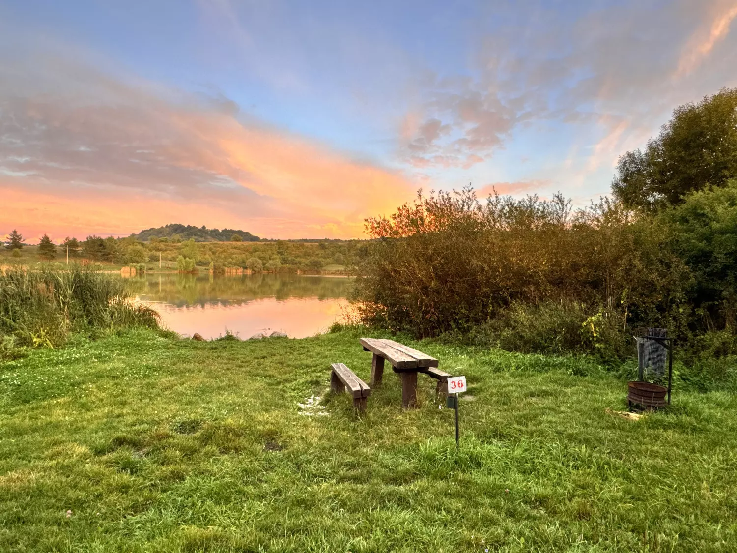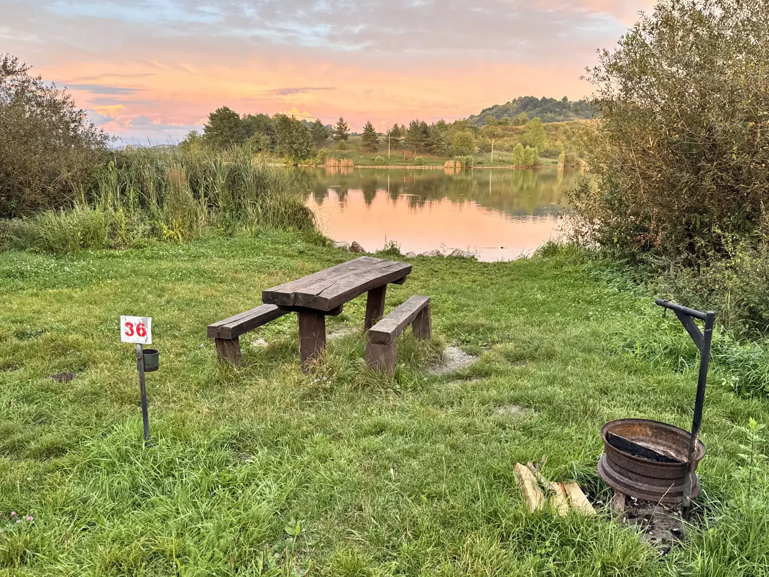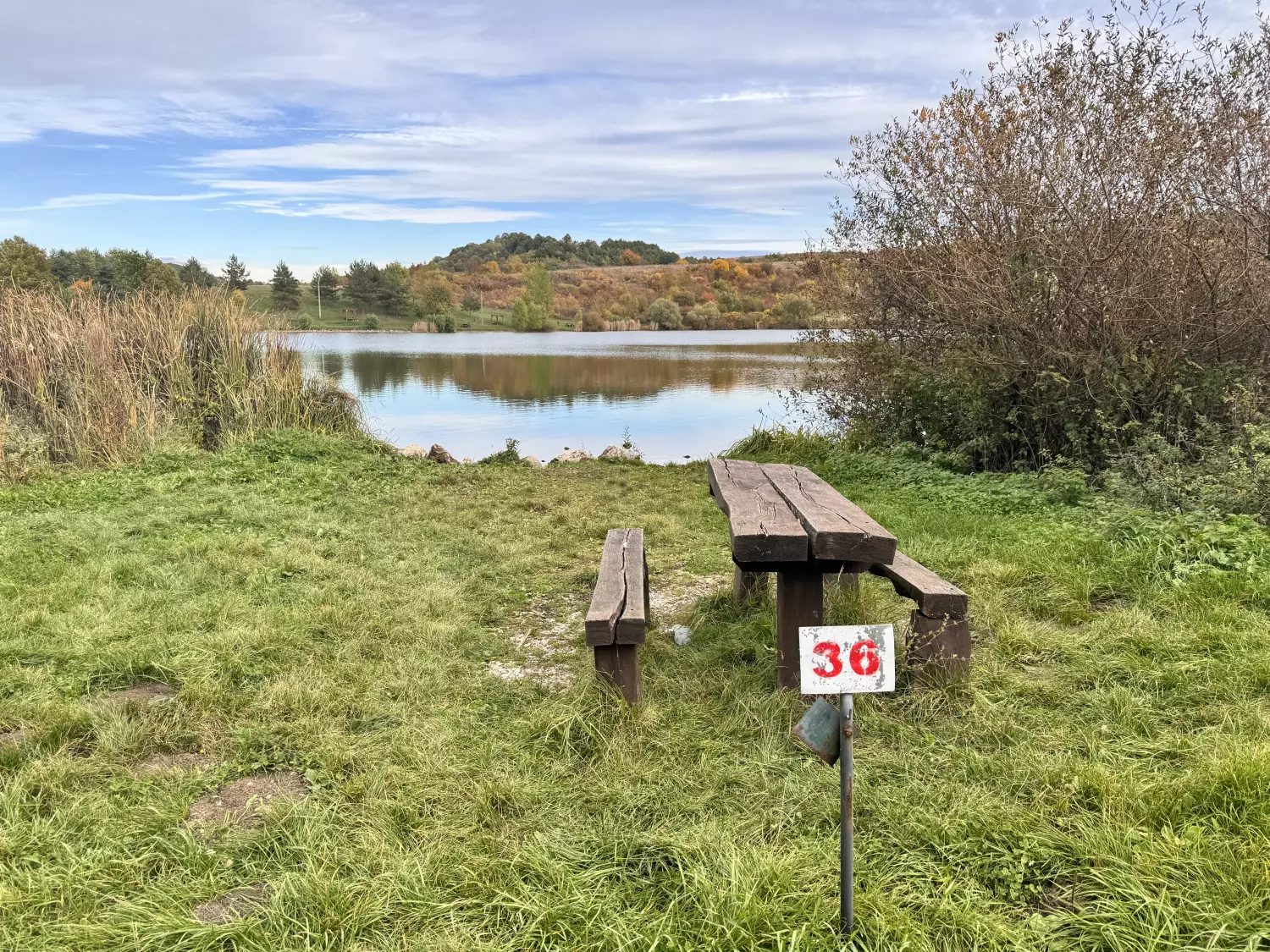 A 36-os horgászállás gondozott, füves területen helyezkedik el, közvetlen vízparti eléréssel. Az állásnál fa asztal és padok biztosítják a kényelmes tartózkodást. Hulladékgyűjtő a horgászhely közelében elérhető, valamint tűzrakóhely is rendelkezésre áll. A nyílt partszakasz jó rálátást ad a vízre, így többféle parti horgászmódszer alkalmazására is alkalmas, miközben a környezet csendes és rendezett.